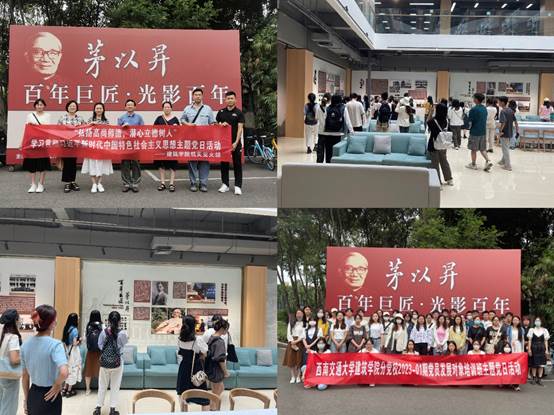 学院各师生党支部近期还分别组织参观了《茅以升:百年巨匠·光影百年》主题展,学习茅以升“爱国、科学、奋斗、奉献”的精神内涵。此次主题展是一个原创展览,由西南交大图书馆重新梳理史料,在完成了十余万字《百年巨匠茅以升》基础上,又根据新资料新图片最后调整定稿,从2018年开始筹备,历时五年而成。展览聚焦茅以升的成长、为师为学、科学与工程实践,投身新中国的建设等内容,分为《成长》、《师者》、《科工》与《新生》四个篇章。主题展运用贯穿茅老人生历程的80个场景,以珍贵历史影像配文的呈现方式,再现茅老波澜壮阔的人生历程,生动讲述了茅老作为享有世界声誉的桥梁专家、科学家、教育家、社会活动家,追求科学、追求真理、追求光明的一生,充分诠释了“爱国、科学、奋斗、奉献”的茅老精神内涵。