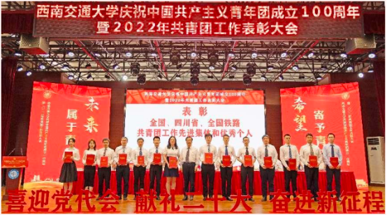 4月29日,西南交通大学庆祝中国共产主义青年团成立100周年暨2022年共青团工作表彰大会在西南交通大学(犀浦校区)一食堂三楼大学生活动中心举行。